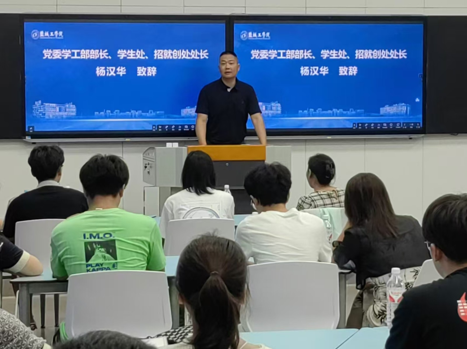 杨汉华对新生及家长的到来表示欢迎,对2024级新同学顺利考取盐城工学院表示祝贺。他从文化历史、办学特色、发展脉络等方面介绍了学校的基本情况,梳理了近年来学校在教育教学、科研创新、社会服务、学生管理等方面取得的丰硕成果。他指出,家庭教育是教育的源头,学校始终坚守立德树人根本任务,高度重视家校共育,通过开设“盐工家长教室”搭建家校沟通桥梁,带动家长广泛参与“大学第一课”新生教育工作,充分发挥学校与家庭的教育合力,着力强化家校育人成效,不断推进三全育人落地落实。