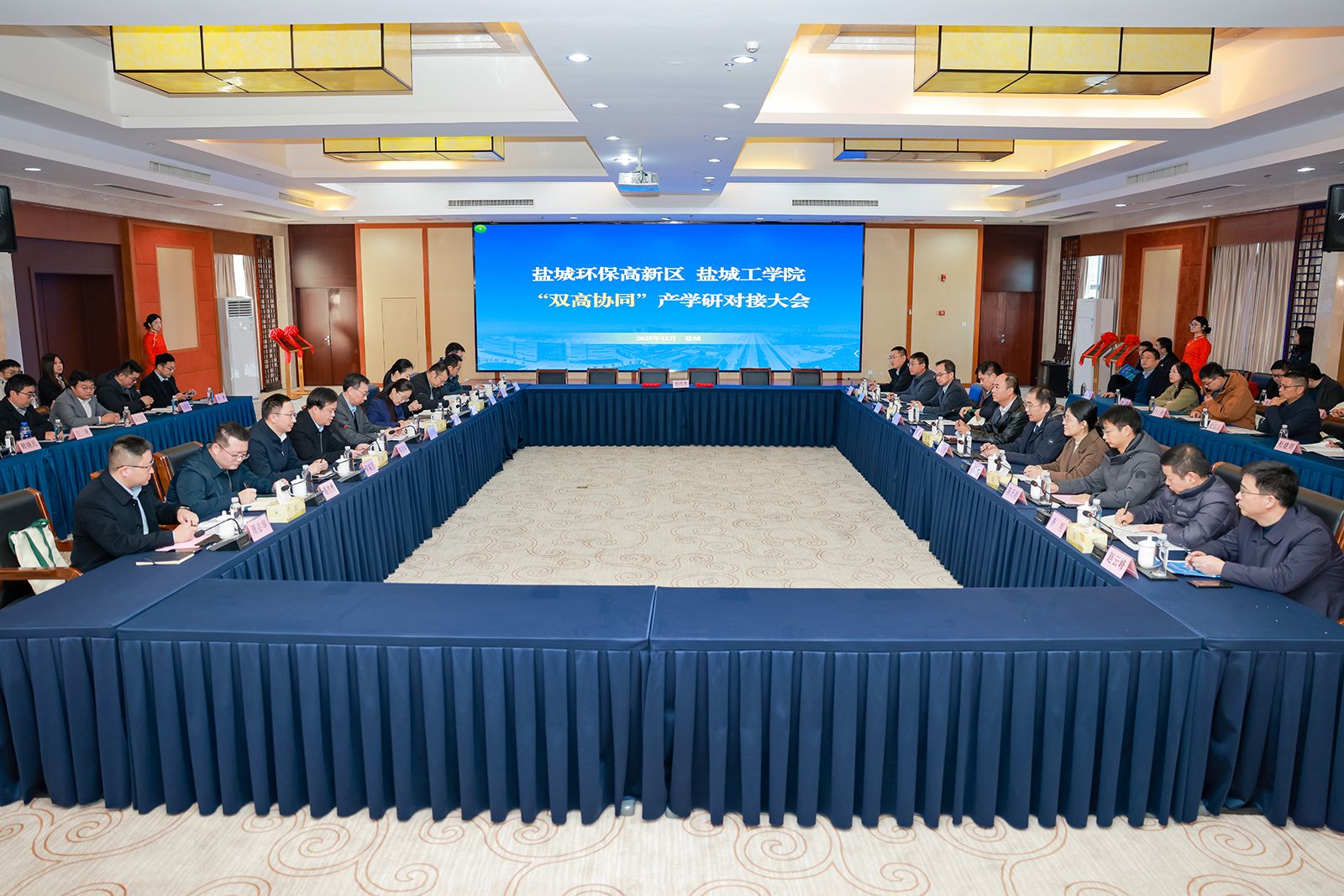 12月5日下午,在盐城环保高新区绿巢大厦四楼多功能会议室,365体育投注与盐城环保高新区联合举办主题为“创新引擎节能 协同聚势环保”的“双高协同”产学研对接大会。党委副书记、校长邵荣,副校长、盐城市政协副主席丁成,盐城市科技局副局长姜浩然,亭湖区委常委、盐城环保科技城党工委副书记、管委会主任于婷婷等出席会议。盐城环保高新区党工委副书记郭宗标主持会议。365体育投注研究生院、实验室建设与设备管理处、图书馆、大学科技园、环境学院、材料学院、信息学院主要负责人,校级科研机构教师、技术经理人、“科技副总”代表,科技处全体人员,盐城科技局相关处室、环保高新区“双高协同”工作专班、高新区部分企业代表约100人参加会议。