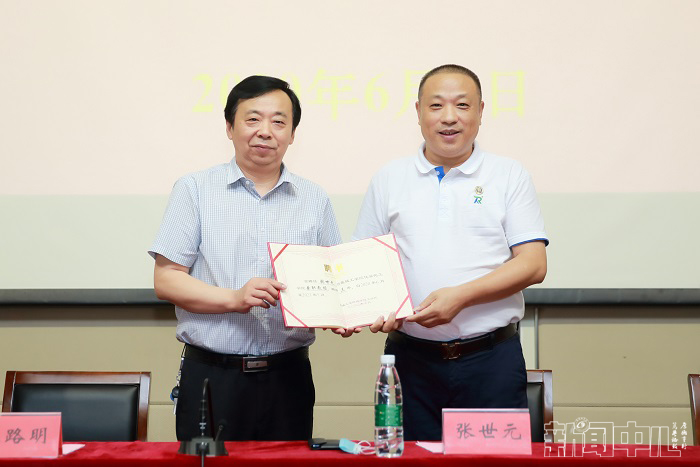 副校长王路明向润泰化学股份有限公司董事长张世元颁发兼职教授聘书