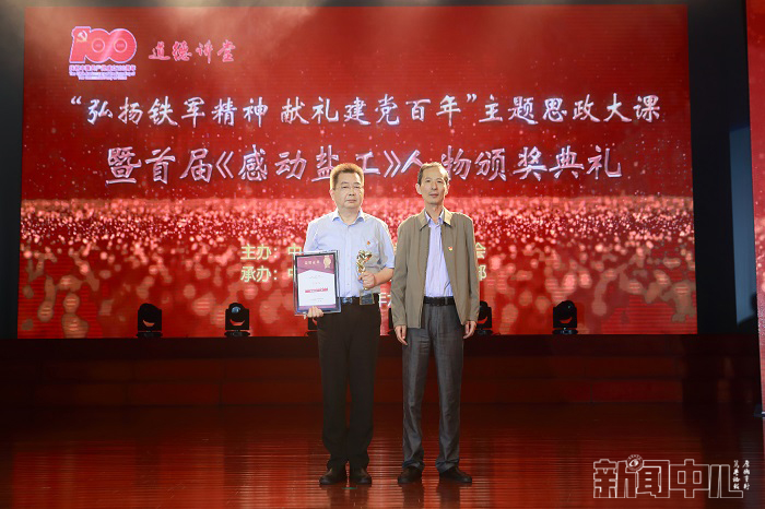 6月23日下午4点,在行政楼报告厅,由学校党委宣传部承办的“弘扬铁军精神,献礼建党百年”主题思政大课暨首届“感动盐工”人物颁奖典礼隆重举行。校党委书记刘祖汉,党委副书记、校长方海林,党委副书记薛浩,党委常委、副校长邵荣,党委常委、纪委书记、省监委派驻监察专员陈春雷,党委常委、副校长宋长春、王资生、魏少华,江苏省志愿服务联合会副会长、盐城市委宣传部二级调研员陈中才等领导出席典礼并分别为“感动盐工”人物当选者颁发奖杯和证书。