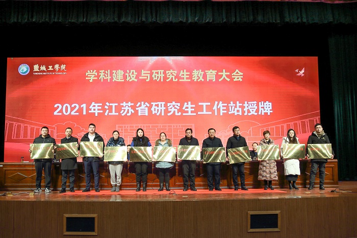 会上,研究生院、机械工程学院、化学化工学院及行业代表作交流发言,进行了2021年江苏省研究生工作站授牌仪式。