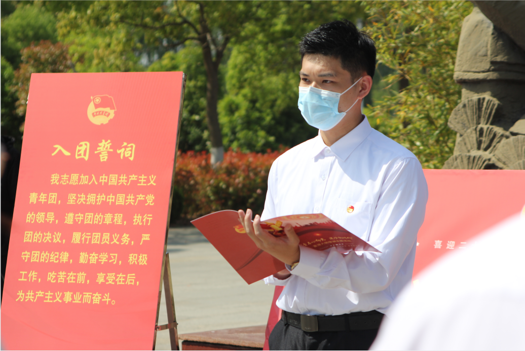 活动现场,伴着《义勇军进行曲》的响起,怀着对祖国无限的热爱和崇高的敬意,全体人员齐唱国歌,行注目礼,庄严肃穆。随后,青年师生代表们面朝神圣的团旗,在设计艺术学院团委副书记叶祯菲的领誓下,再一次紧握右拳,庄重宣誓:“我志愿加入中国共产主义青年团,坚决拥护中国共产党的领导……”熟悉又庄严的誓词提醒着在场的每一位团员青年:铭记团员使命,不忘入团初心,勤奋学习,积极工作,吃苦在前,享受在后。江苏省优秀共青团员获得者、电气工程学院C电气182班周栋泽作为团员代表发言。他表示,作为新时代的中国青年,要以青春血性,激扬时代潮流,以青春之姿,助推国家繁荣。始终树立远大理想、热爱伟大祖国,锤炼品德修为、勇于砥砺奋斗。
