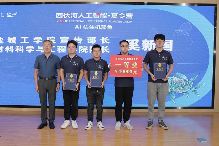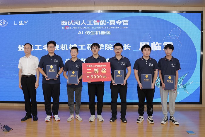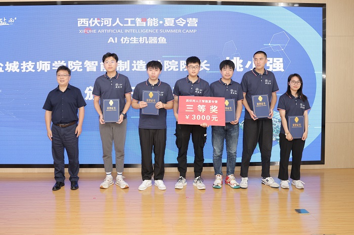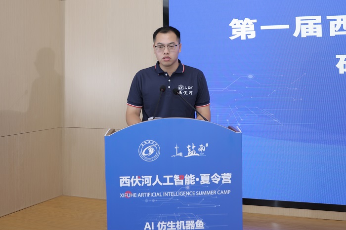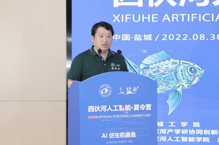 丁成代表学校致辞。他说,西伏河人工智能学院自成立以来,围绕培养“能力硬核+素质全面”的高水平技术人才,以市场需求为导向,以企业技术为命题,正在聚力打造一批兼具前沿性、创新性和交叉性的人工智能课程,建设一支拥有丰富实践经验和深厚理论功底、具有国际视野的一流师资队伍,人工智能人才培养体系不断完善。西伏河人工智能夏令营是365体育投注深化校地融合发展、推进政产学研协同创新的一次有益尝试和创新举措。此次西伏河人工智能夏令营激发了同学们对人工智能、大数据、物联网等新一代ICT技术的热情,同学们围绕仿生机器鱼开发制作实物,攻关研究关键技术,初步形成了一批具有创新效应的知识产权成果。下一步,西伏河人工智能学院、人工智能产业研究院将进一步聚焦盐南人工智能产业,梳理人工智能企业的技术需求、产业需求和人才需求,开展西伏河人工智能论坛、西伏河人工智能大讲堂、西伏河人工智能职工培训学校、西伏河人工智能竞赛俱乐部等一系列活动,将西伏河打造成为365体育投注产学研融合发展、校政企协同育人的靓丽名片。