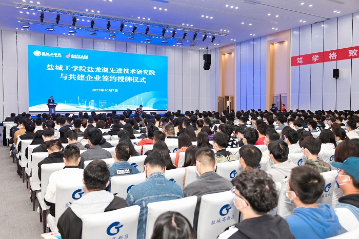 仪式上,校企双方签订盐龙湖先进技术研究院实验室、研究生培养实践基地共建协议。崔刚宣读研究生培养实践基地和校外实践指导教师聘任文件。薛浩和马正华为研究生培养实践基地企业授牌。王资生和高翔为研究生校外实践指导老师颁发聘书。