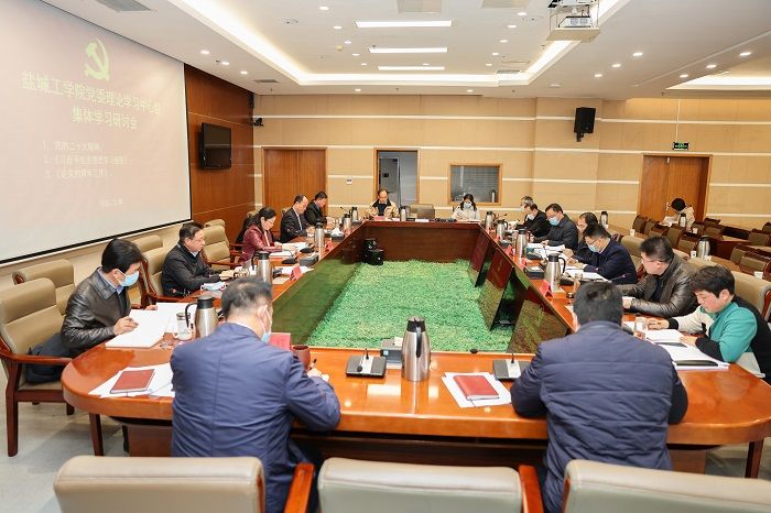12月8日上午,在希望大道校区行政楼9楼视频会议室,校党委理论学习中心组举行集体学习研讨会,深入学习党的二十大精神、《习近平经济思想学习纲要》和《论党的青年工作》。校党委书记方海林主持。党委副书记、校长邵荣,党委副书记薛浩,党委常委、副校长崔刚、王资生,副校长、盐城市政协副主席丁成,党委常委、副校长王伟,党委常委、纪委书记、省监委派驻监察专员陈伟,党委常委、副校长张勤芳,党委常委、党委统战部部长姚军,党委常委、党委组织部部长邢晓平,党委常委、党委宣传部部长奚新国出席,党办、校办、纪委机关、发改办等部门主要负责人参加。