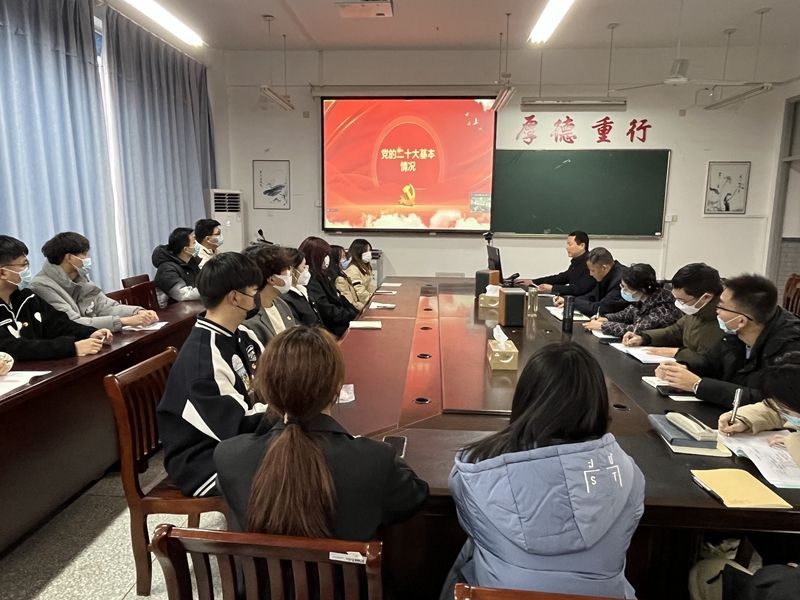 12月6日晚,校党委宣讲团成员、经管学院巡讲团团长、院党委书记卜树春为全院学生党员、全体2019级大学生上党课,专题宣讲党的二十大精神。学生党员代表、2019级学生代表、辅导员老师在仁和楼B502会议室参加,其他学生党员、2019级其他学生通过线上形式参加学习。