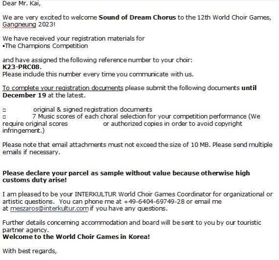 近日,365体育投注“梦之声”合唱团收到世界合唱比赛德国组委会邮件确认:经世界合唱比赛艺术委员会专家组评判,“梦之声”合唱团具备直接晋级第二阶段“冠军赛”的参赛资格。