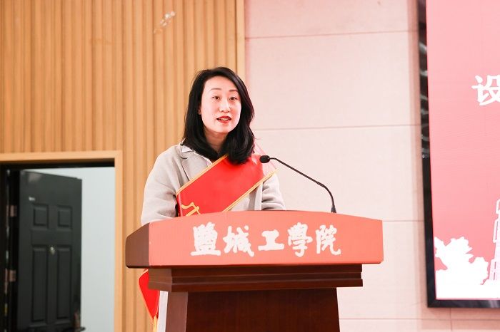 设计艺术学院服装与服饰设计系主任周科代表受表彰的“巾帼文明示范岗” 发言