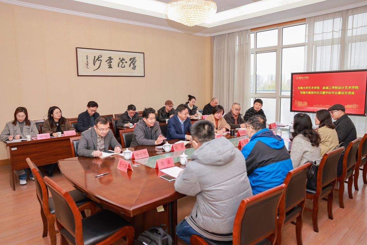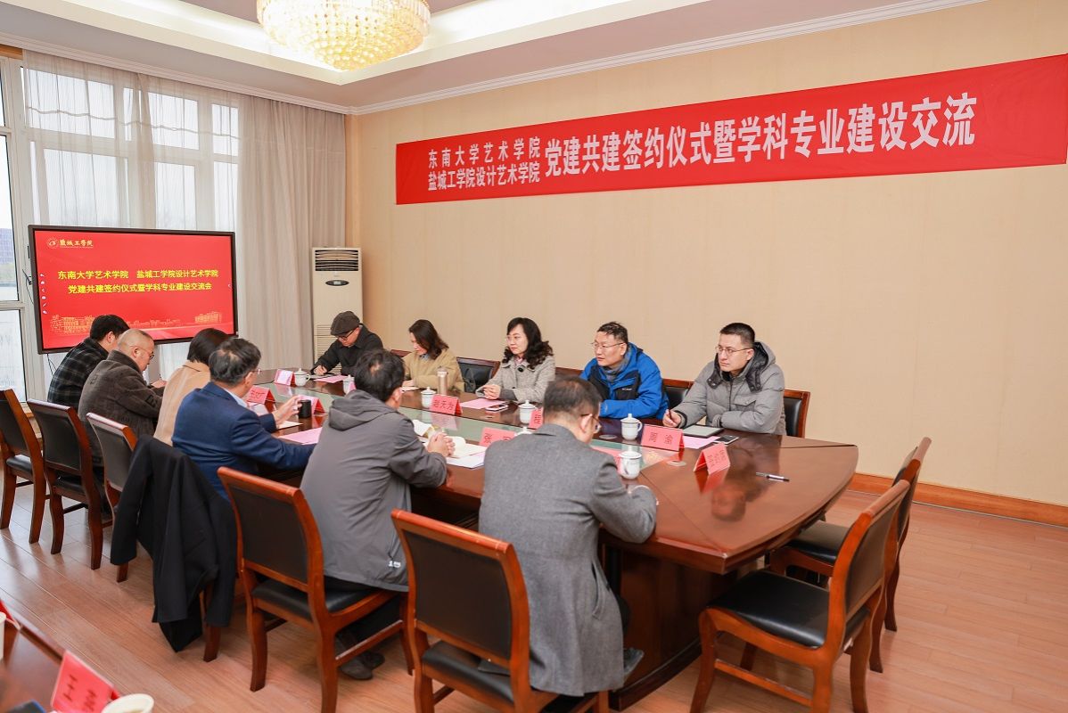 张军介绍了设计艺术学院的发展历程、师资队伍、教学科研、人才培养等基本情况。程万里围绕研究生培养、考核评估、平台建设、访学交流等方面作重点发言。与会人员还就共建乡村建设工作站、教师研修等方面提出具体合作建议,为下一步的深度合作奠定了良好基础。设计艺术学院产品设计系主任、教工党支部书记钱峰和东南大学艺术学院教工第二党支部书记周渝分别作支部建设汇报,并在共建协议书上签字。