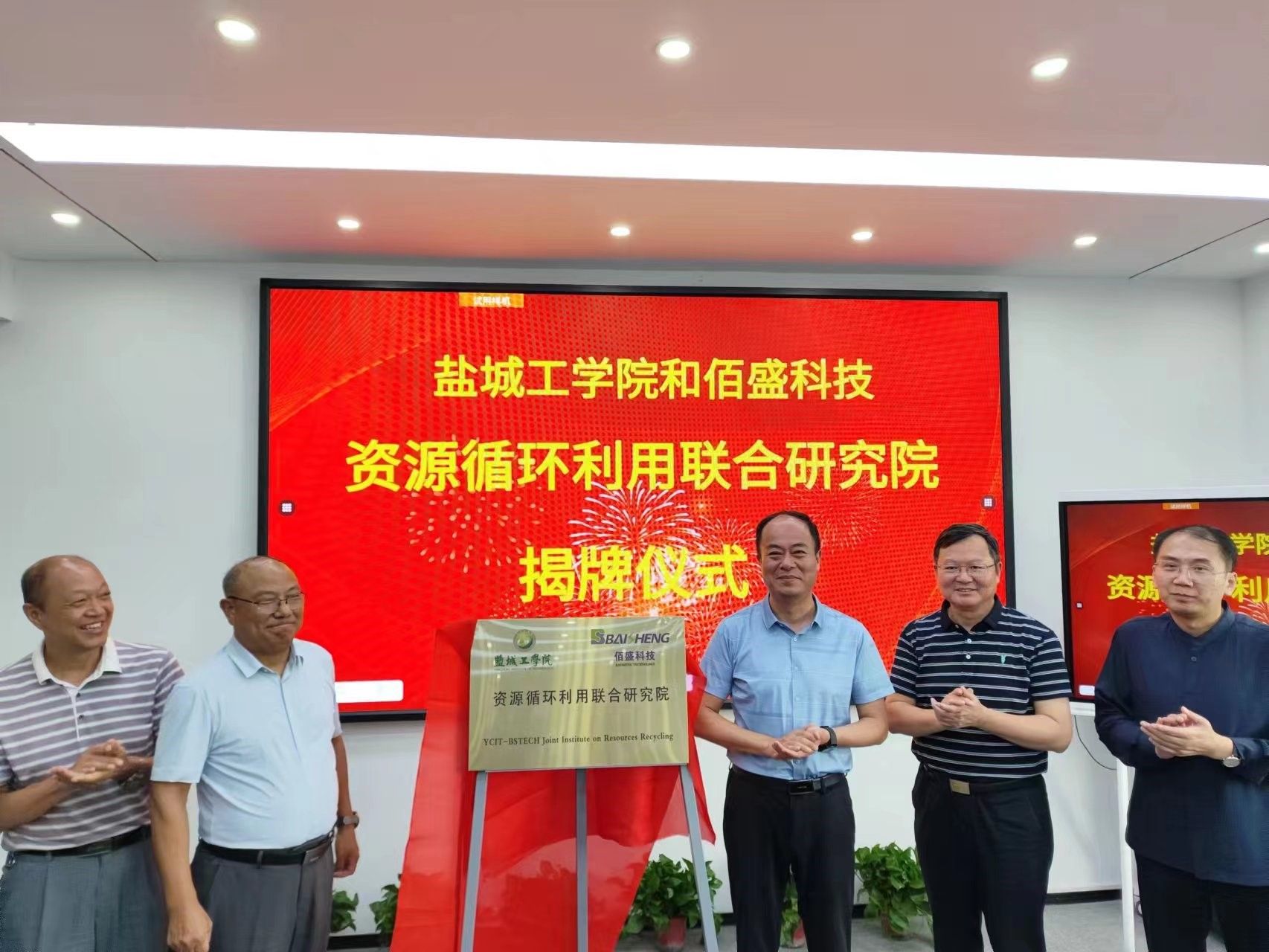 8月22日下午,校长、党委副书记邵荣带队赴南京佰盛玻璃技术有限公司为资源循环利用联合研究院揭牌。党委常委、副校长崔刚,副校长、盐城市政协副主席丁成出席揭牌仪式,校办、校友会办公室、材料学院负责人和相关教师参加活动。