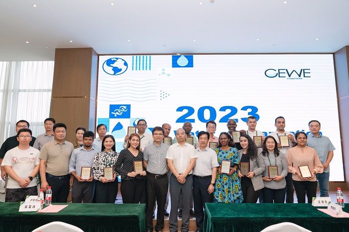 会后,王资生、李晓东、栾富波分别向国际学员颁发“2023年中国科学院-发展中国家科学院水与卫生培训班”结业证书并合影。