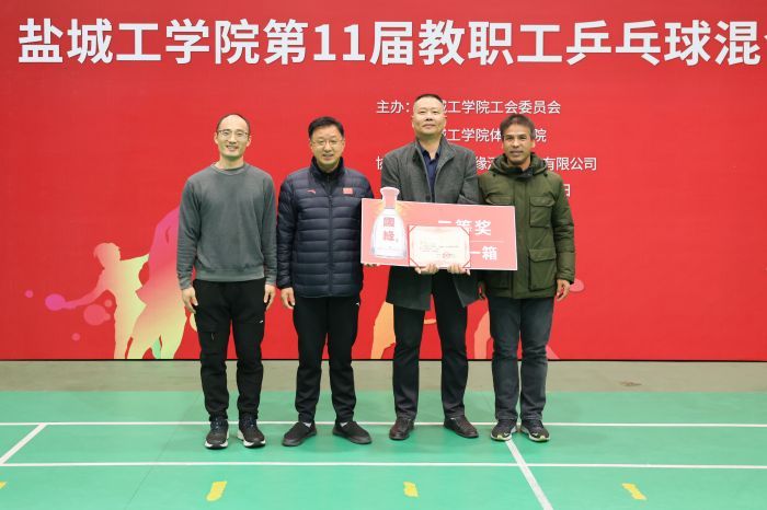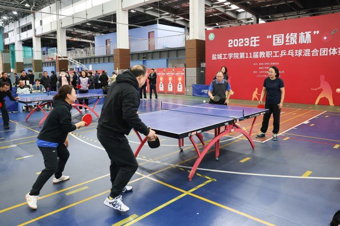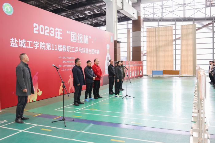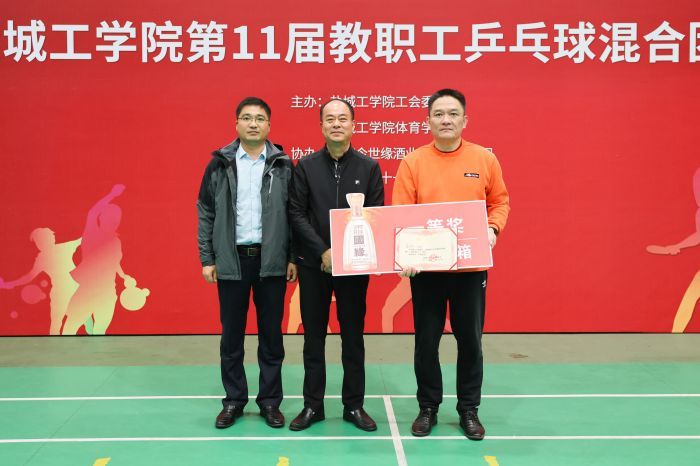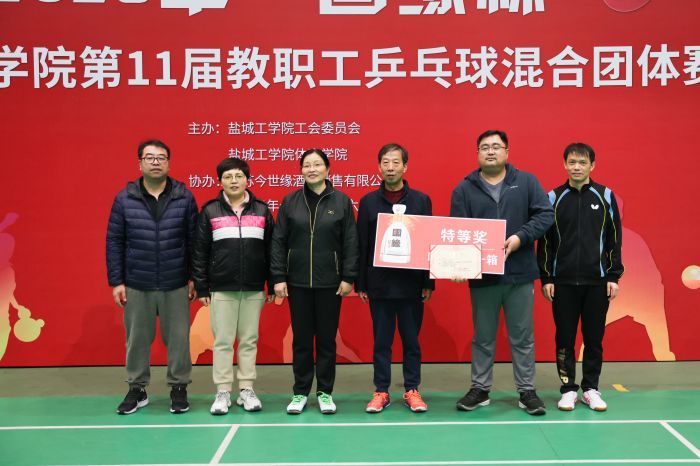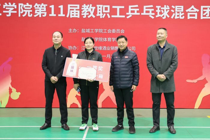 为积极推进全民健身运动和校园文化建设, 11月26日,365体育投注在希望大道校区风雨操场举办“国缘杯”第11届教职工乒乓球混合团体赛。党委书记方海林,校长、党委副书记邵荣,党委副书记薛浩,党委常委、副校长崔刚,副校长、盐城市政协副主席丁成,党委常委、副校长张勤芳出席。方海林宣布比赛开始并为获特等奖队伍颁奖,邵荣、薛浩分别为获一、二等奖队伍颁奖。工会负责人、基建规划处处长廖大干代表组委会致辞。江苏今世缘酒业销售有限公司盐城大区盐城市区办事处经理徐朋代表赞助商致辞。体育学院党总支书记杨汉华主持开幕式,副院长仇乃民宣读竞赛规程。杨善兵代表运动员宣誓,宁昌峰代表裁判员宣誓。组委会副主任谢毅敏主持颁奖仪式。