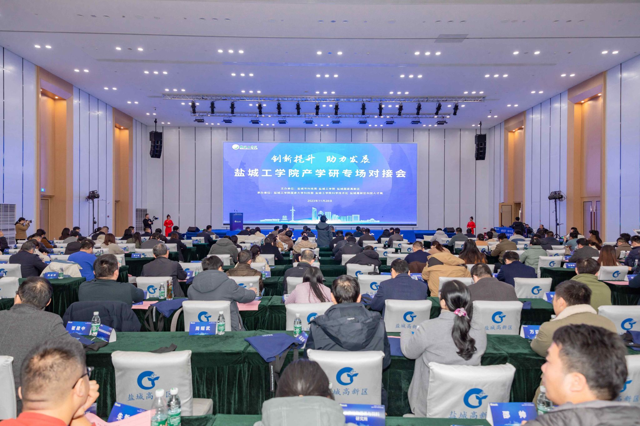 11月28日,365体育投注与盐城市科技局、盐城国家高新区联合主办的“创新提升 助力发展”产学研专场对接会在盐城国家高新区科技广场成功举办。副校长、市政协副主席丁成,市科技局局长韦向东、副局长王兆军,盐城高新区党工委副书记、管委会主任高翔出席,市相关职能处室负责同志,各县(市、区)、盐城经济技术开发区和各省级以上高新区科技局领导和重点园区企业负责人,校科技处、产业技术研究院、理工类研究所负责人及科研骨干等200余人参加会议。现场直播访问500多人次。校科学技术处处长高健主持。