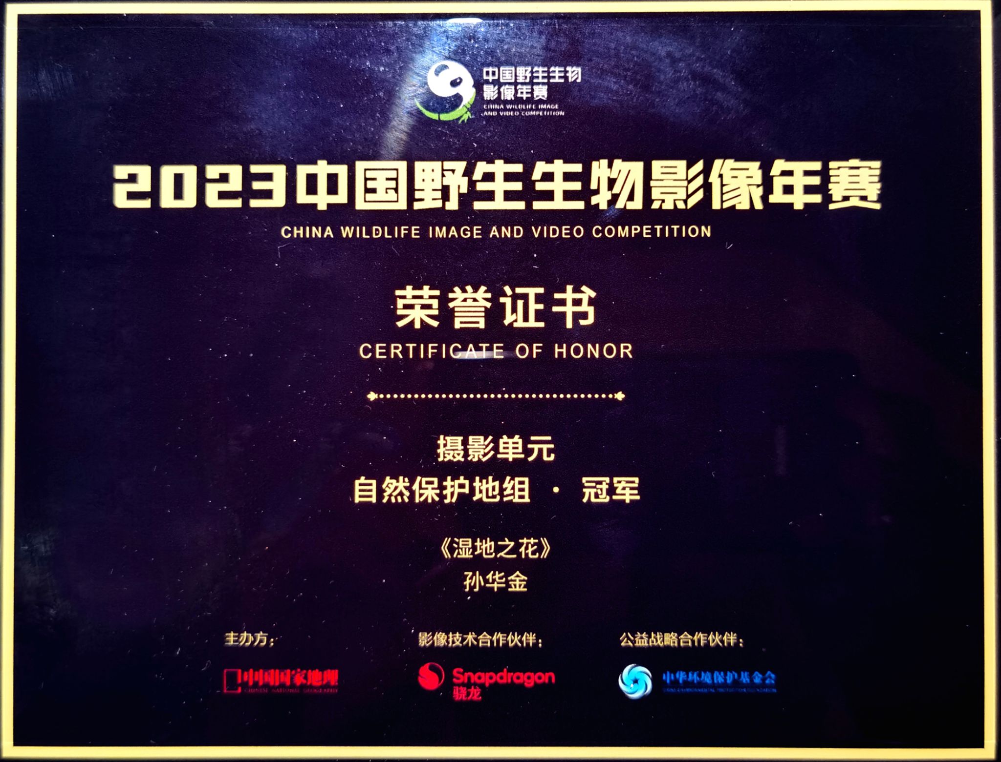 近日,由中国国家地理主办的享誉国际的自然影像赛事——2023中国野生生物影像年赛颁奖典礼在北京举行。365体育投注孙华金副教授拍摄的作品《湿地之花》获得摄影单元自然保护地组冠军。