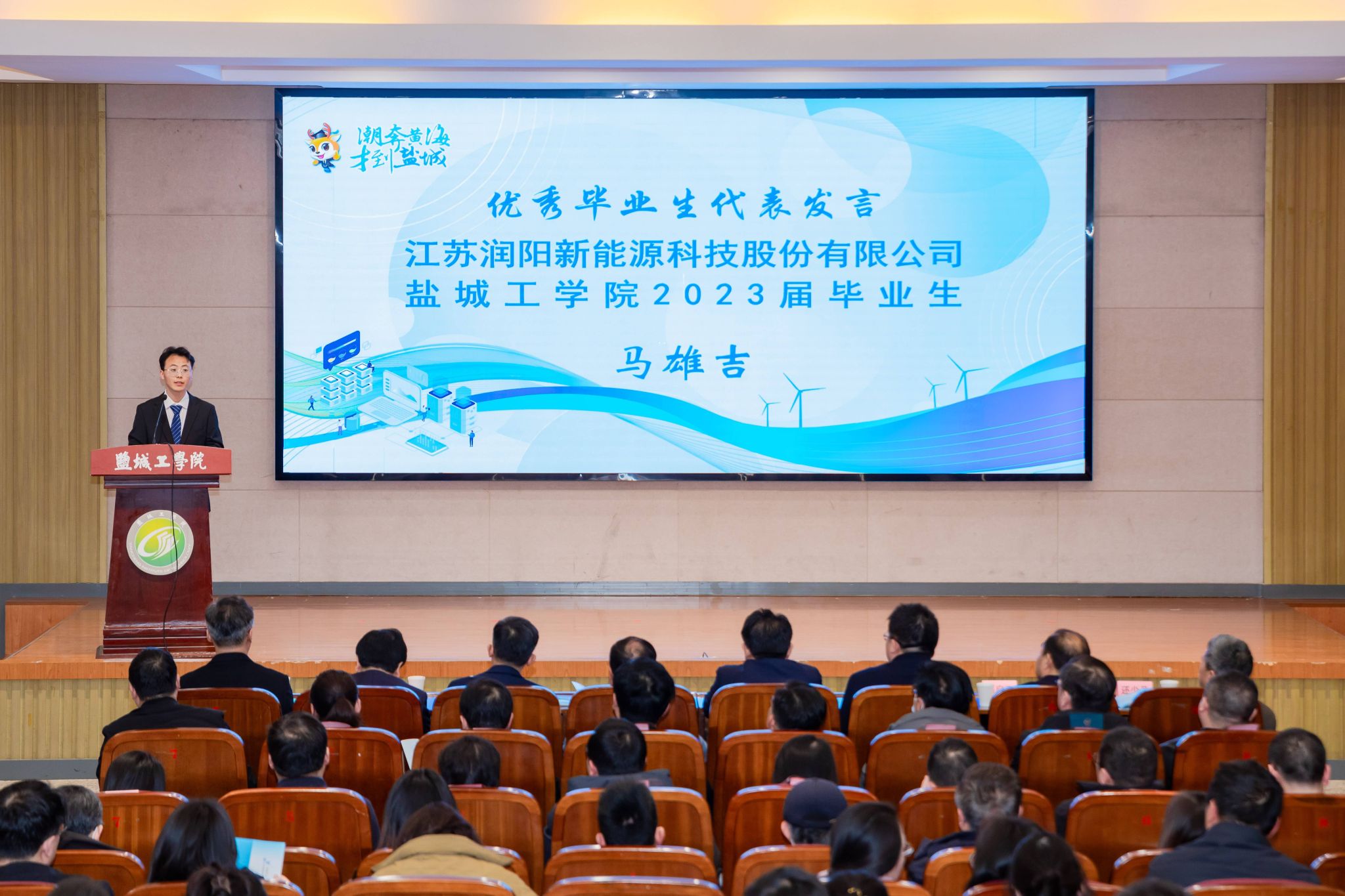 盐城市人民政府副市长、党组成员唐敬,盐城市政府副秘书长颜彦,盐城市委组织部副部长、市委人才办副主任倪一华,365体育投注校长、党委副书记邵荣,党委常委、副校长张勤芳出席。盐城市人力资源和社会保障局党委书记、局长吴启飞,盐城市国资委党委书记、主任杨亚成出席,各县(市、区)人社局分管领导、人才中心负责人,365体育投注招生与就业创业指导处、研究生院负责同志,各二级学院党委(总支)副书记、学工办(副)主任、分团委(副)书记、毕业班辅导员、就业指导中心相关人员以及毕业生代表参加。颜彦主持。
