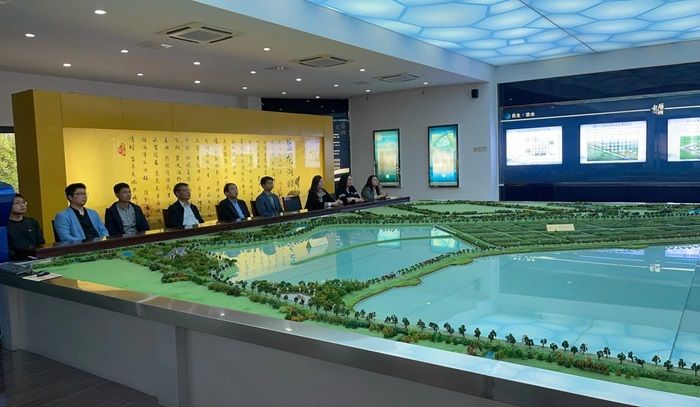 会前,丁成一行实地参观了盐龙湖水源地,观看了盐城城市供水事业发展纪实及盐龙湖饮用水源地建设宣传片。