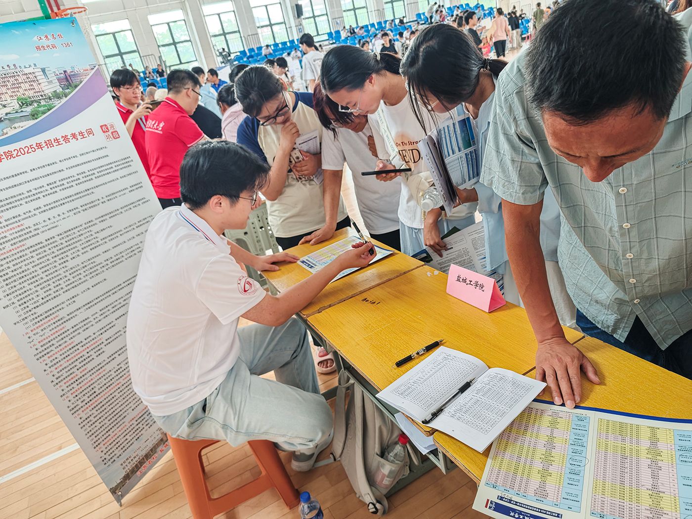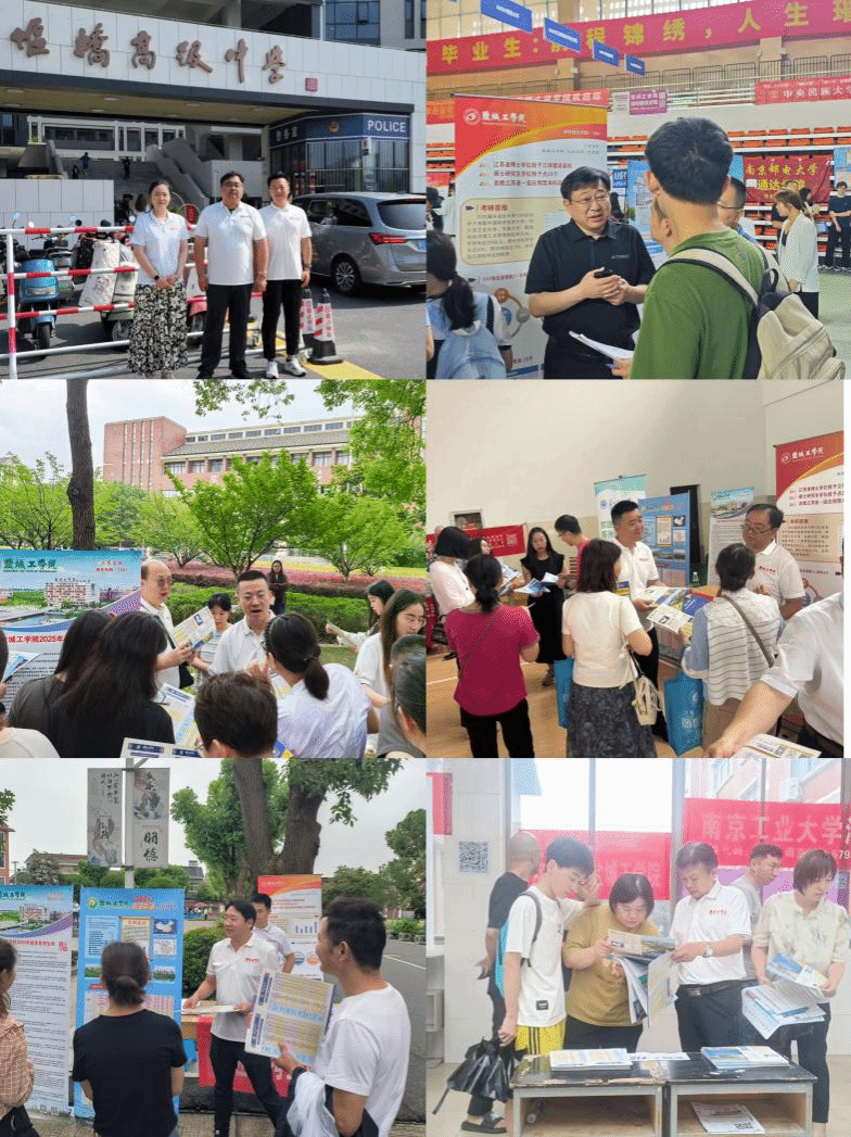 6月24 日高考成绩公布后,学院党政领导带队,5 个工作小组即刻奔赴泰州市区、姜堰、兴化等五地二十余所高中,通过三天密集宣传,以招生海报展示、政策手册发放、一对一志愿指导等形式,全方位解读学校优势学科、本科硕士培养体系及 2025 年招生新政。咨询现场考生及家长络绎不绝,招生团队针对专业分流规则、就业前景等高频问题,结合历年录取数据提供精准解答。