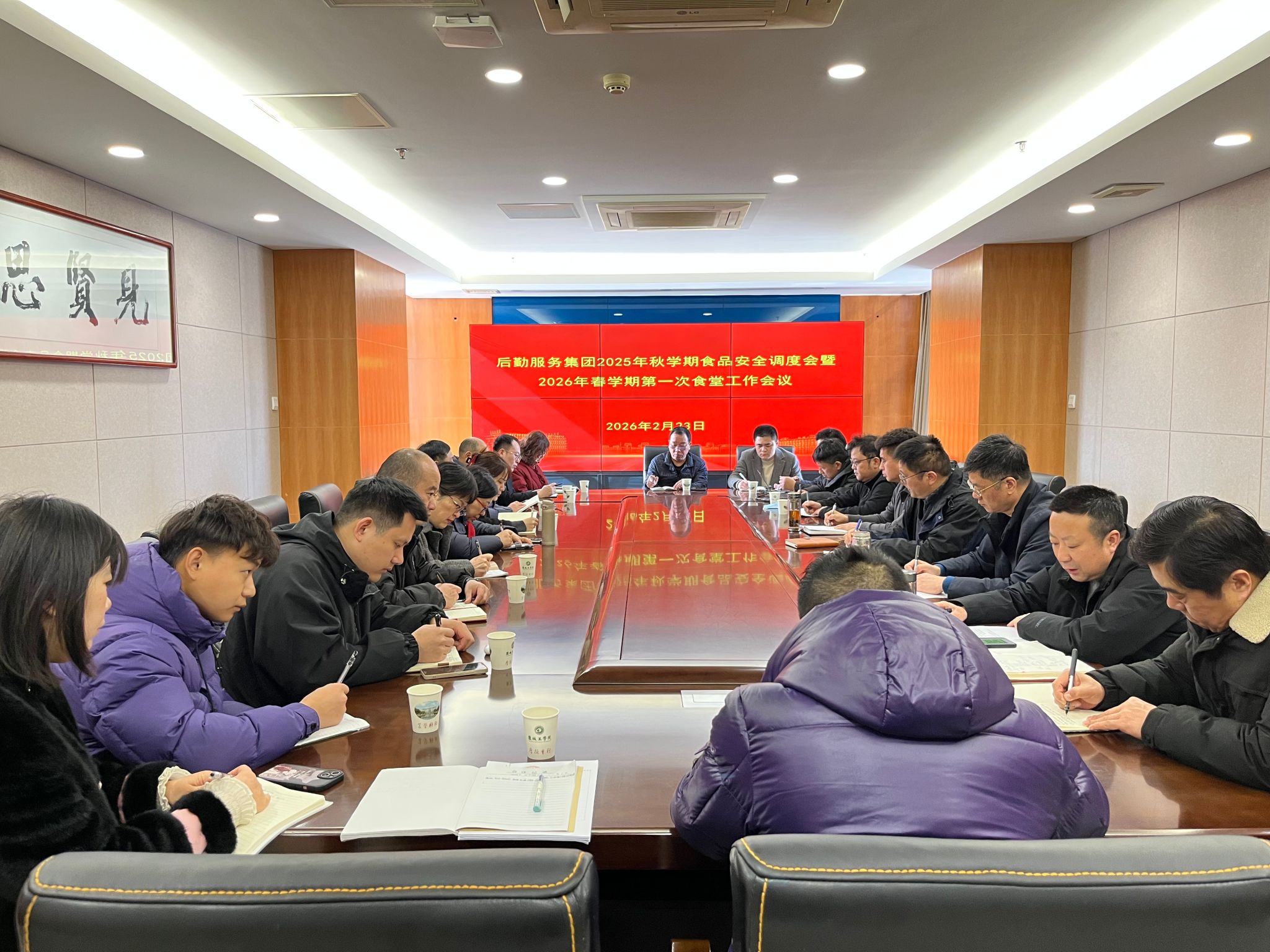 2月23日上午,在行政楼328会议室,后勤服务集团召开2025年秋学期食品安全调度会暨2026年春学期第一次食堂工作会议。会议由集团党委书记李刚主持。总经理潘文东、副总经理岳红印出席,饮服中心和采购中心相关负责人、食品安全管理员、各餐厅项目经理参加。