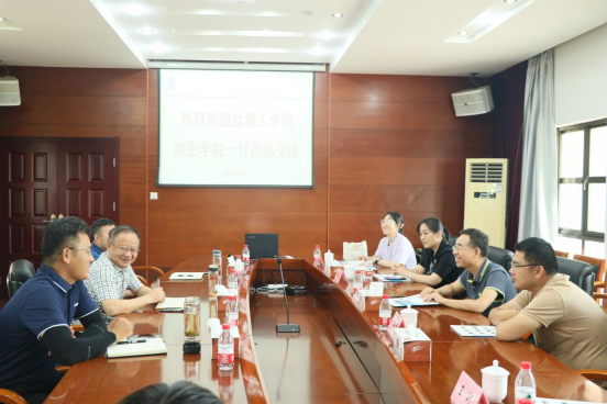 社会实践团队首先走进光明渔业有限公司,在工作人员带领下参观了公司先进的鱼塘数据监控系统和饵料投喂系统,登上参观台观看了万亩的水产养殖基地,详细了解了大丰光明渔业的整体规模和日常生产经营情况。该公司应用大数据的现代化鱼塘管理模式、企业生产运转调度效率极高,监控监管覆盖范围广,从饵料投喂到近期海产品市场营销状况都一目了然,公司除主体现代化鱼塘外,在旁还设有水产品加工厂,工作岗位与学院专业高度契合。参观过后,光明渔业党委书记王军代表公司对海生学院的来访表示热烈欢迎。他对企业目前的生产经营业绩情况进行了简要介绍,并对于双方前期合作取得的成果给予肯定。他表示,盐城工学院海生学院与光明渔业具备良好的产学研究合作基础,将在此基础上合作建立就业实习基地,双方在人才培养、产品研发、项目申报等方面深化合作,实现优势互补、相互促进、共同发展。