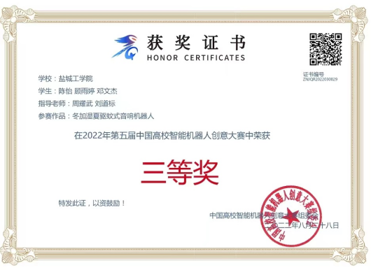 8月28日,第五届中国高校智能机器人创意大赛决赛在浙江举行,365体育投注机械优集学院大一学生陈怡同学作品(周耀武、刘道标指导)《冬加湿夏驱蚊音响机器人》获得江苏赛区一等奖、全国三等奖;顾雨婷同学作品(刘道标指导)《全自动速食机器人》、吴伯焘同学作品(郁倩指导)《智能移动垃圾桶》、吴周宇同学作品(周耀武指导)《智能鞋柜》获得江苏赛区三等奖。