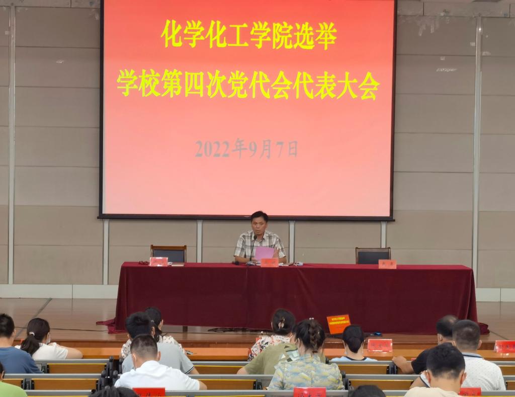 化学化工学院党委严格按照代表条件、代表名额和结构要求,经过自下而上,自上而下,上下结合,充分酝酿协商,根据多数党员的意见,按照不少于应选代表名额20%的比例,提出代表候选人预备人选,经公示,报校党代会筹备领导小组组织组审查同意后,召开学院党员大会,正式选举学院出席学校第四次党代会的代表。