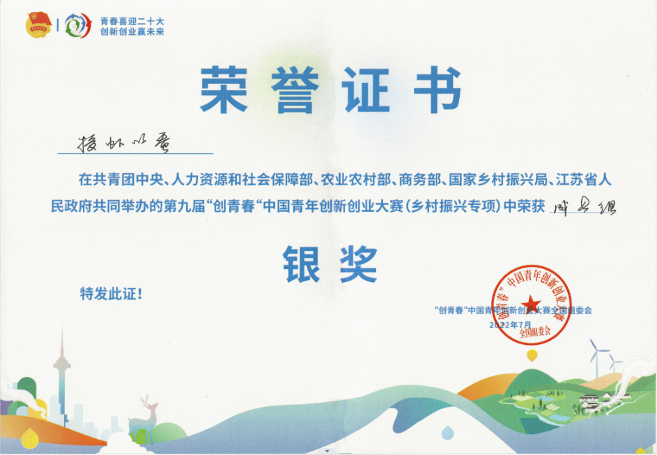 近日,由共青团中央、人力资源社会保障部、农业农村部、商务部、国家乡村振兴局和江苏省人民政府共同主办的第九届“创青春”中国青年创新创业大赛(乡村振兴专项)在盐城落下帷幕。来自全国的4867个项目报名参赛,750个项目入围初赛,140个项目进入半决赛角逐12个金奖、26个银奖、42个铜奖。由365体育投注教师卞保武、吕富指导,海生学院2018届校友、盐城市奥甘昵客农业发展有限公司董事长刘丹的《授虾以蚕》项目获得大赛成长组银奖。