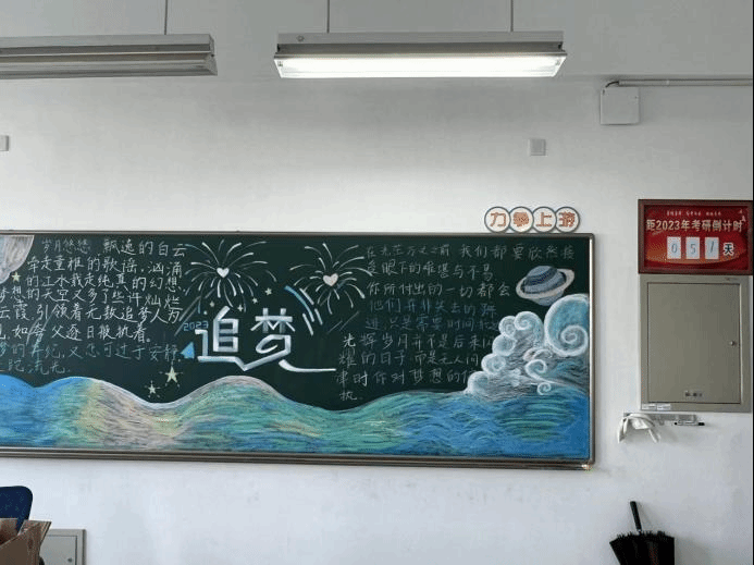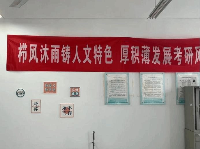 老师和学生们精心布置了自习室,在黑板上创作考研主题板报,设置“考研加油站”。学院还给考生们提供茶水、咖啡等饮品,教室安静温馨,学习氛围浓郁;考研就业部的同学将每周打扫教室两次,给学长学姐们一个干净舒适的学习环境;自习室24小时开放,最多可以容纳60名考生同时复习,方便考生自行调配时间。