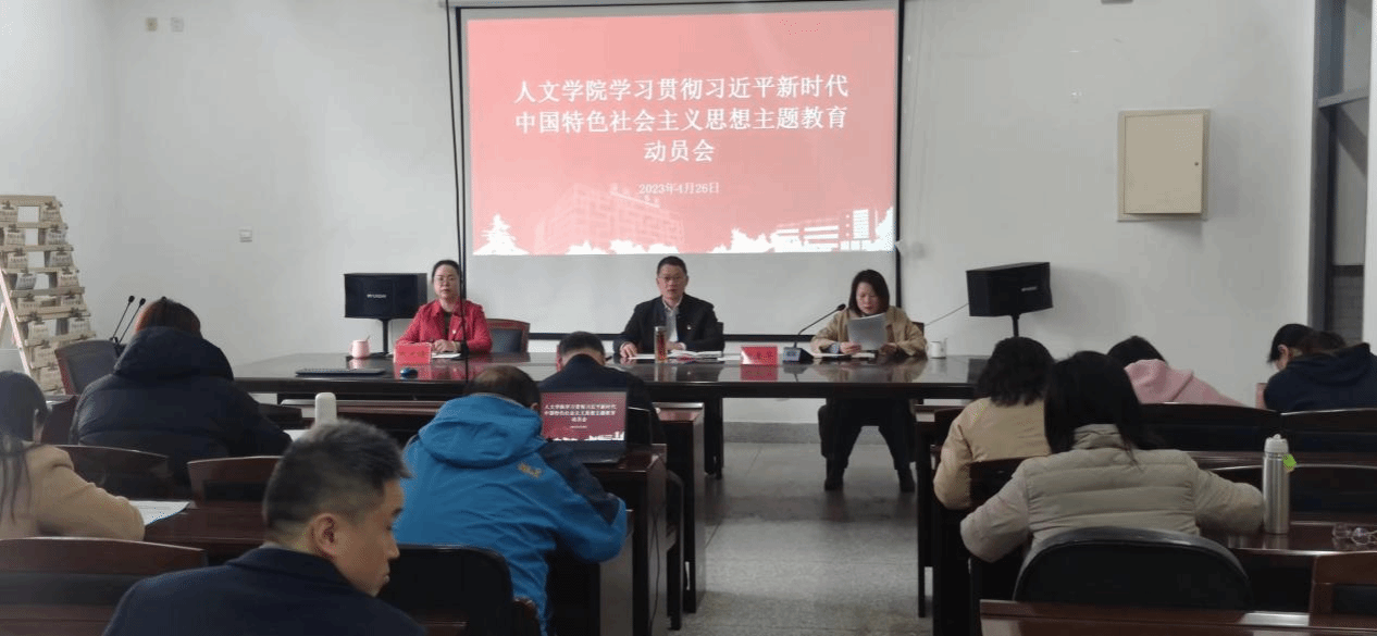 4月26日下午,在仁和楼A304会议室,人文学院召开学习贯彻习近平新时代中国特色社会主义思想主题教育动员会。会议由学院党总支书记何登溢主持,全体教职工参加。