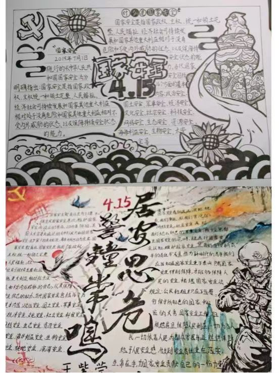4月10日至14日,学院团委组织开展全民国家安全教育日主题作品征集活动,同学们用手抄报、平面海报设计、书法等形式,展现新时代国家安全事业重大成就。学院通过微信公众号发布总体国家安全观相关知识,介绍国家安全教育的重要性、国家安全的基本内容、国家安全面临的形势与挑战等内容,并对征集的学生优秀作品进行线上展示。