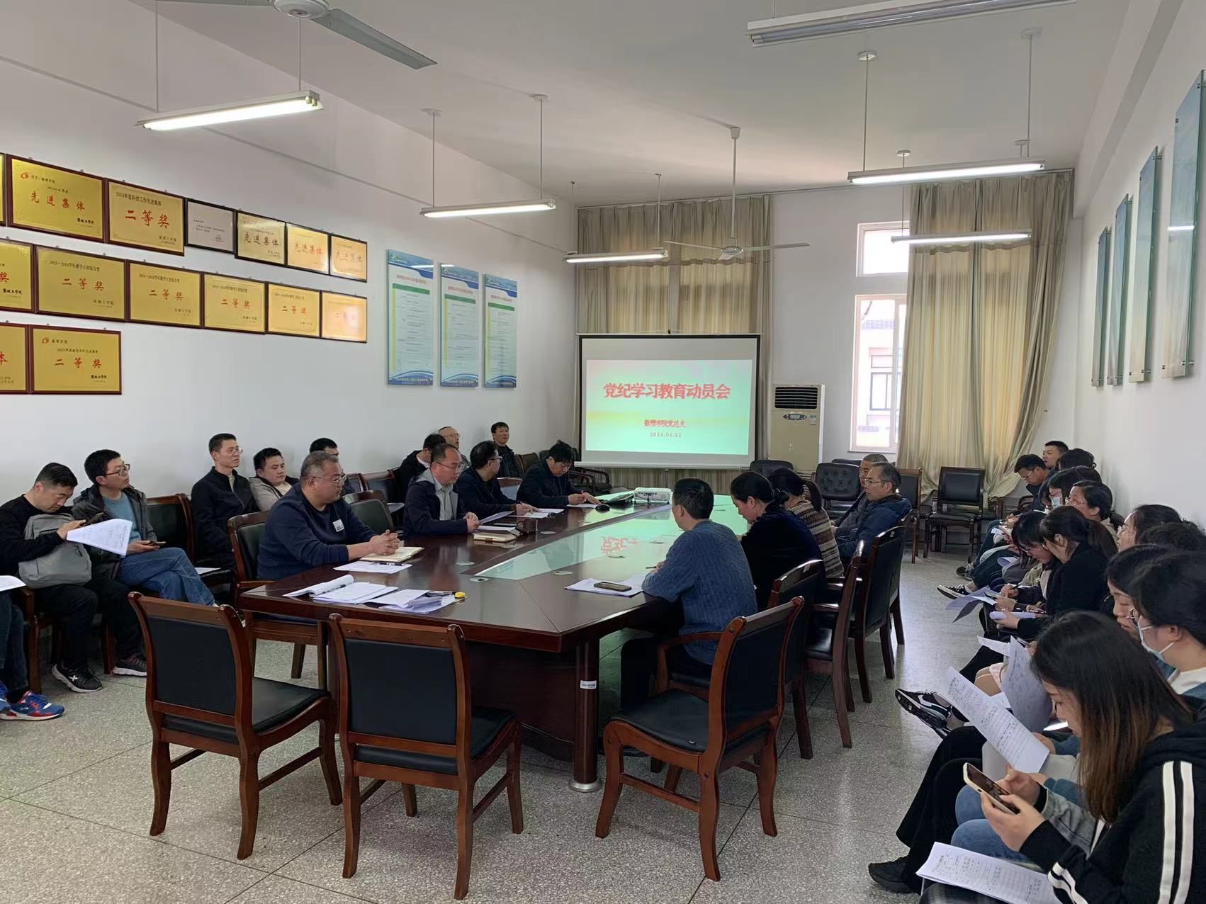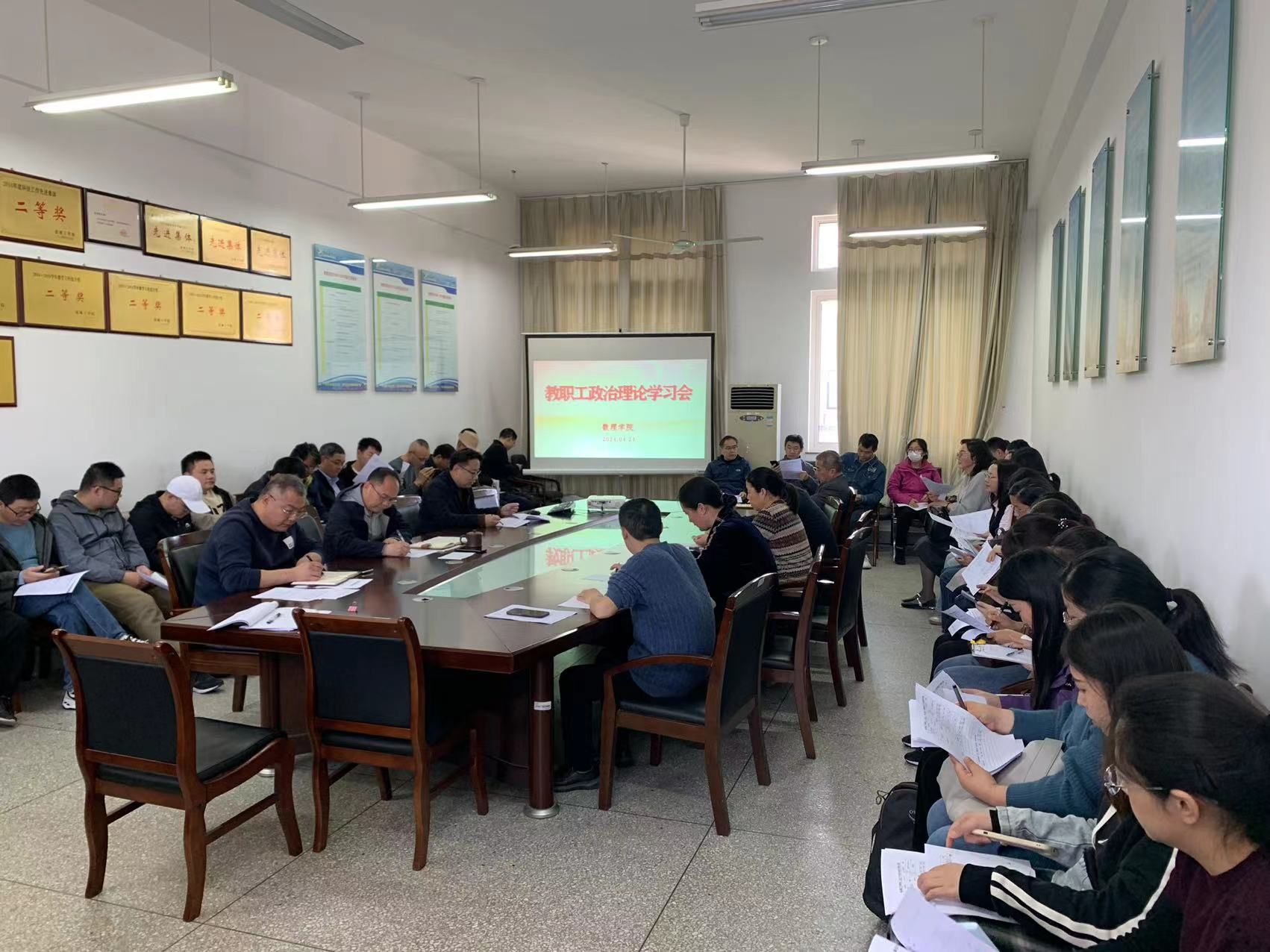 4月24日下午,在希望大道校区博学楼B512会议室,数理学院组织开展教职工政治理论学习,党总支书记魏伟华主持,全体教职工参加。