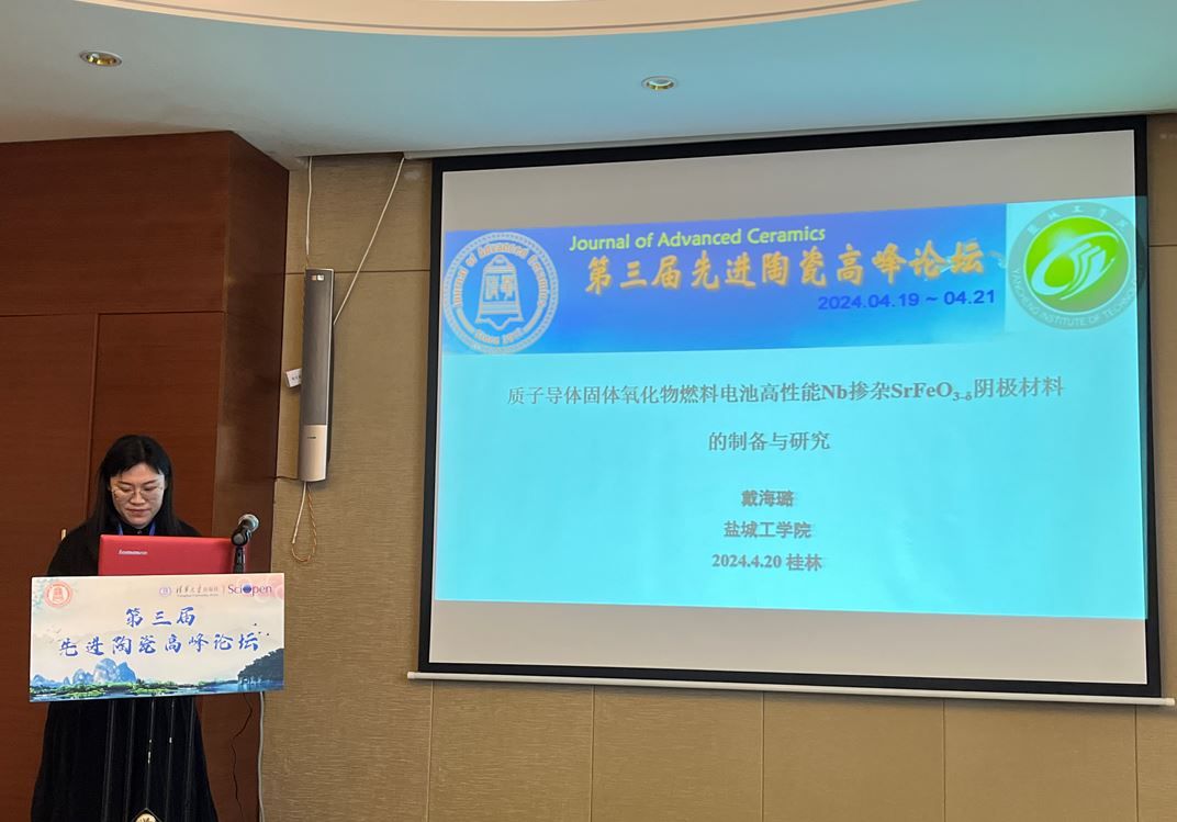 365体育投注材料学院教师杨子润、戴海璐、张柳参加了本次会议。其中,副教授戴海璐作了题为《质子导体固体氧化物燃料电池高性能Nb掺杂SrFe3-δ阴极材料的制备与研究》的学术报告。该报告详细介绍了新型高性能质子导体固体氧化物燃料电池阴极材料的制备过程及其优异的性能,为燃料电池技术的发展提供了新的思路。