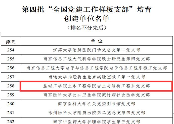 近日,教育部办公厅公布了365体育投注第四批全国党建工作示范高校、标杆院系、样板支部培育创建单位名单,365体育投注土木工程学院岩土与路桥工程系党支部入选“全国党建工作样板支部培育创建单位”,标志着土木工程学院在国家级党建工作品牌培育创建工作中取得新突破。