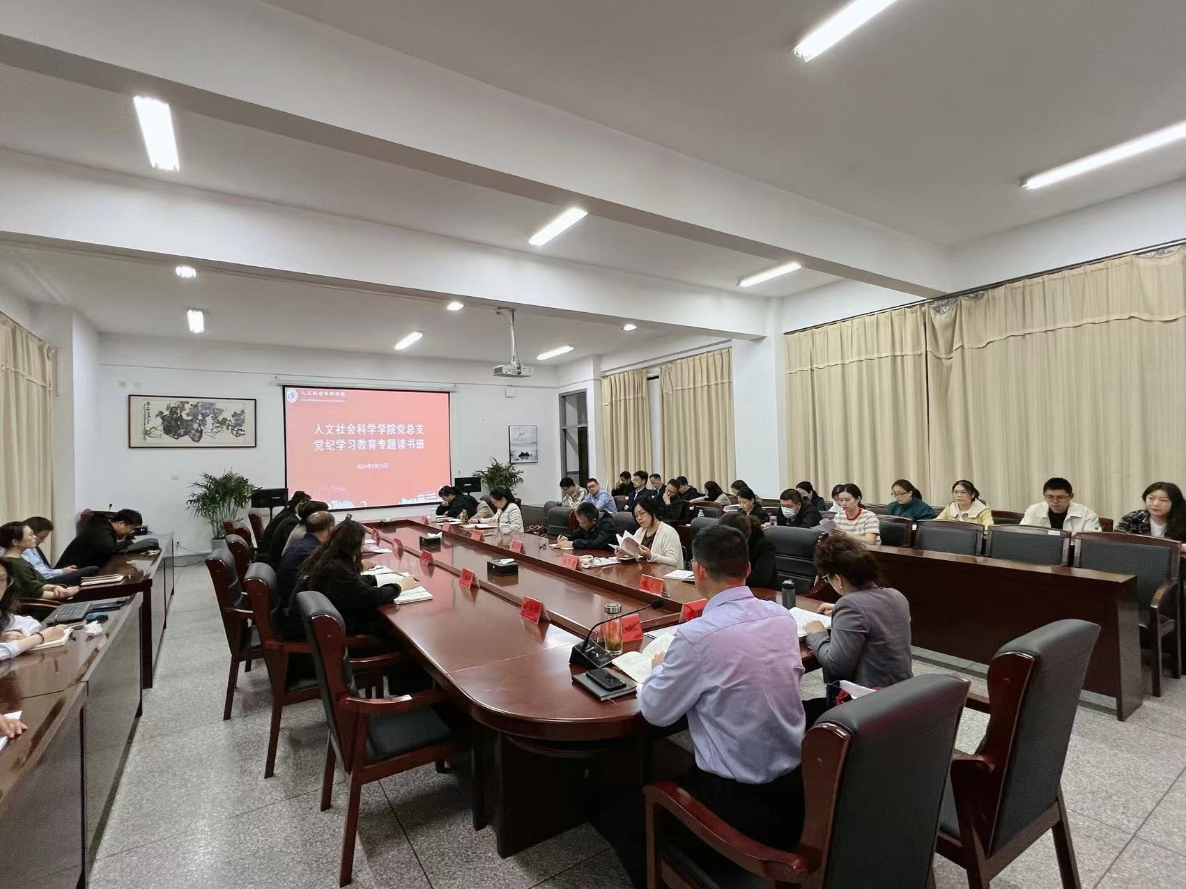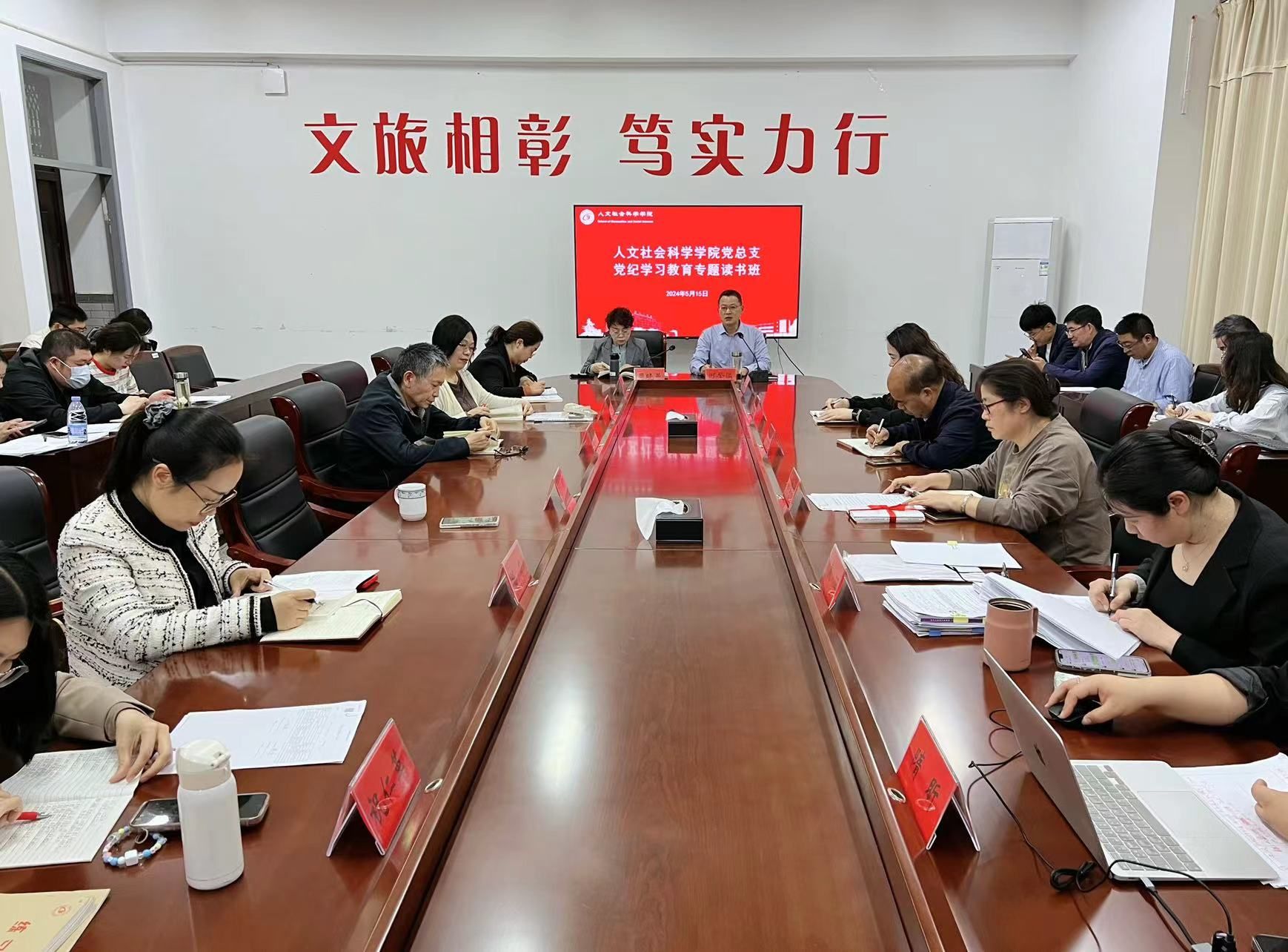 5月15日下午,在仁和楼A304会议室,人文学院组织召开党纪学习教育专题学习会,重点学习《中国共产党纪律处分条例》和《事业单位工作人员处分规定》。学院党总支书记何登溢主持会议,全体教职工参加。