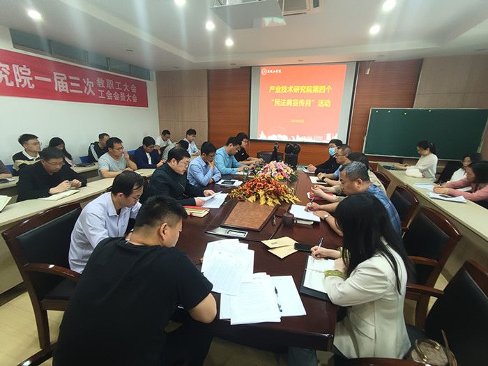 5月16日下午,在北校区知达楼AE209会议室,产业技术研究院组织开展第四个“民法典宣传月”活动。党总支书记、院长严金龙主持,研究院全体教职工参加。