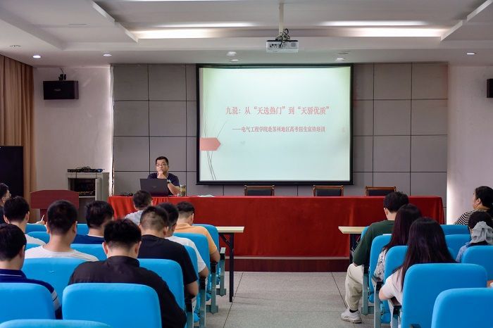为进一步加强招生宣传工作,提升学校知名度,6月21日下午,电气工程学院在南校区怀德楼三楼报告厅召开2024年高考招生宣传培训动员会。学院党委书记于建业主持,院长王建冈、副院长阚加荣出席,学院六个招生宣传组的近20名教师参加。