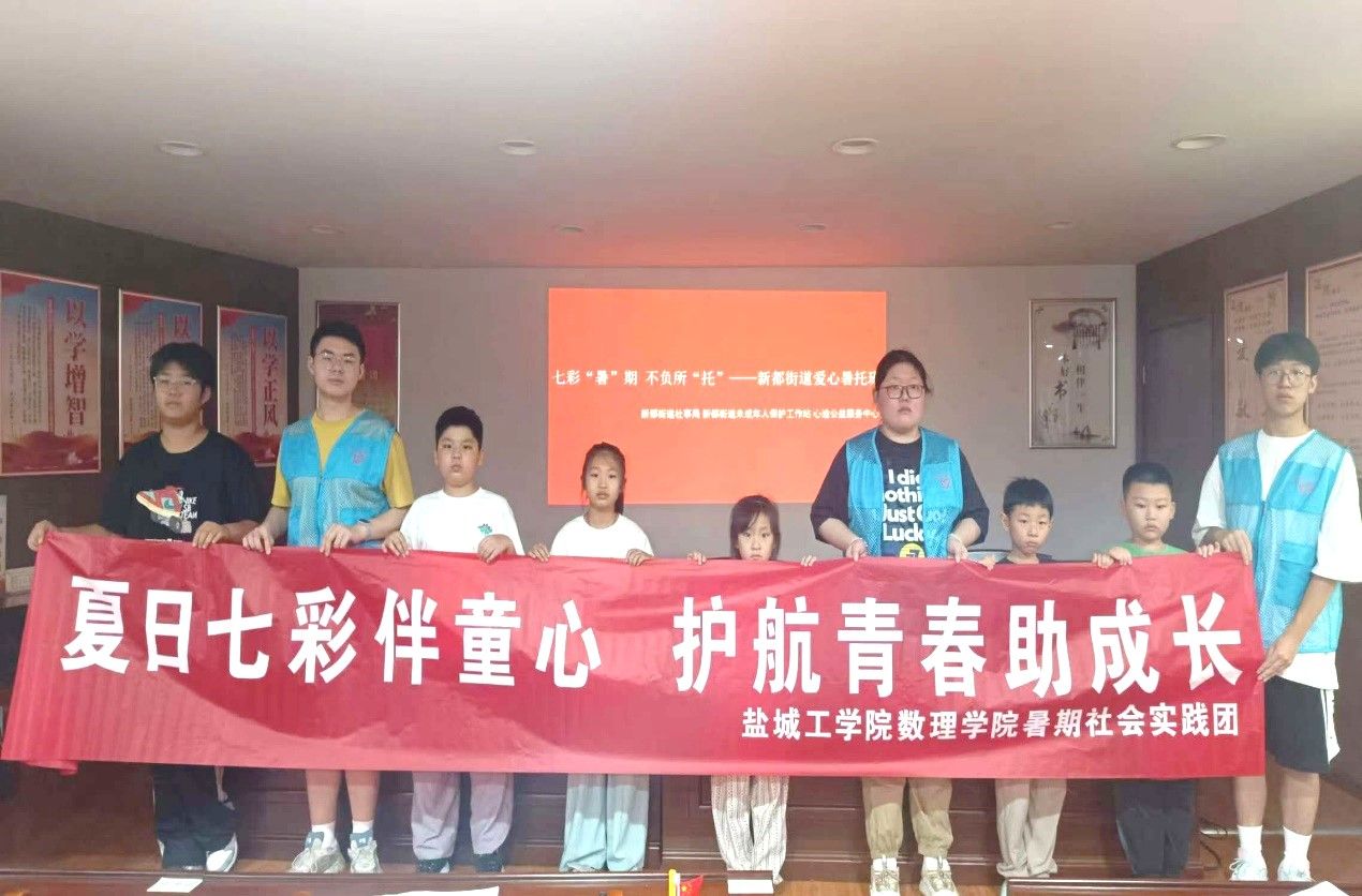 为深入学习宣传贯彻习近平新时代中国特色社会主义思想和党的二十大精神,切实加强对留守儿童、困境儿童等少年儿童群体的关心关爱,组织动员青年志愿者以实际行动为基层注入青春动能,7月15日,数理学院组织大学生暑期社会实践团前往盐城市盐都区新都街道,联合盐城工学院大学生志愿服务实践基地——盐城市盐粒子社会工作服务中心,共同开展“夏日七彩伴童心,护航青春助成长”留守儿童暑期关爱行动。