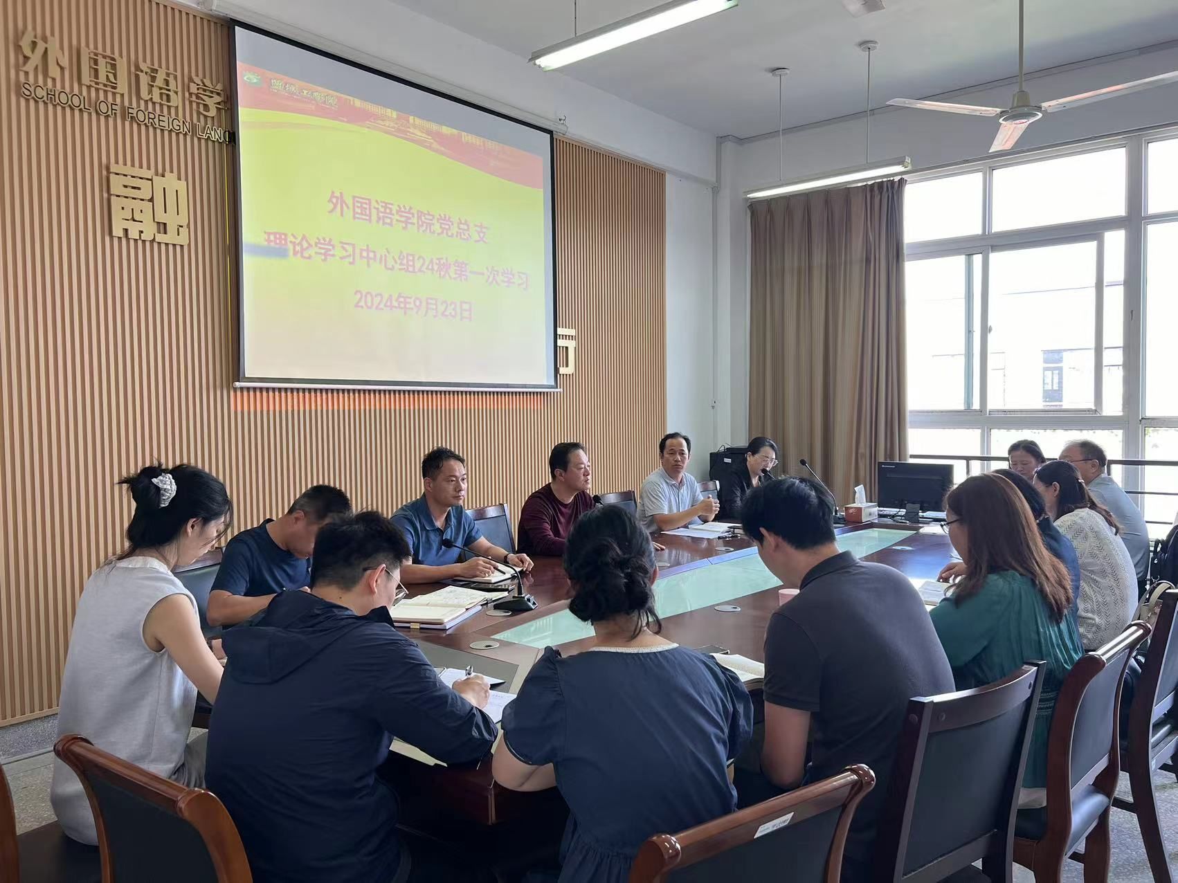 9月24日上午,外国语学院党总支在润美楼A404会议室召开了2024年秋学期理论学习中心组第一次学习。学院党总支书记刘正华主持会议,学院理论学习中心组全体成员参加。