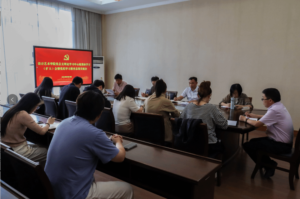 9月23日上午,设计艺术学院党总支在润美楼A311东会议室召开理论学习中心组集体学习(扩大)会暨党纪学习教育总结交流会,围绕新修订的《中国共产党纪律处分条例》、习近平总书记对党纪学习教育工作作出的重要指示精神等内容进行专题学习研讨,并围绕党纪学习教育展开心得交流。学习会由学院党总支书记刘荣主持,党总支理论学习中心组成员,科级以上干部,专业系(实验中心、教研部)主任,全体专职辅导员参加。
