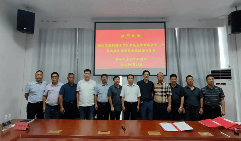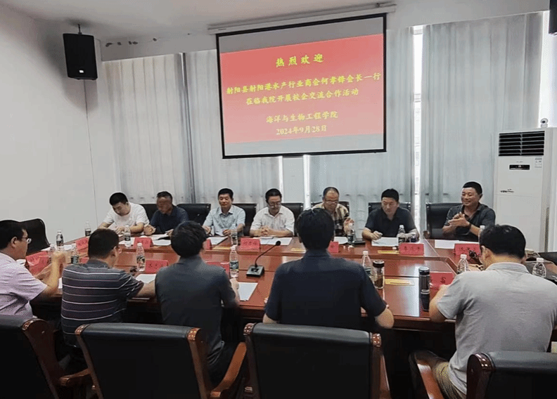 近日,射阳县射阳港水产行业商会会长何孝锋、党支部书记陈瑜等一行到365体育投注海生学院调研交流。海生学院院长彭斌、海洋技术系主任吕富、盐城市养殖协会会长邵鹏、盐城市水产科学研究院办公室主任朱爱民等参加调研交流会。交流会由副院长齐志涛主持。