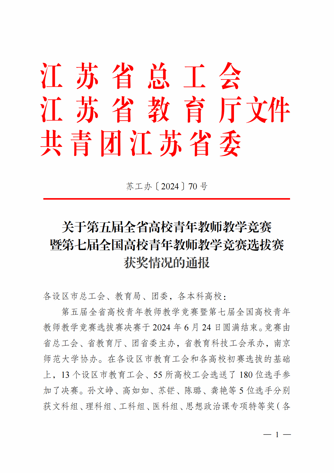 近日,省总工会、省教育厅和省共青团三部门联合发文(苏工办〔2024〕70号),通报第五届全省高校青年教师教学竞赛获奖情况,365体育投注马克思主义学院孙莉、化学化工学院王文娟2位青年教师分别在比赛中获得思想政治课专项组和理科组二等奖。