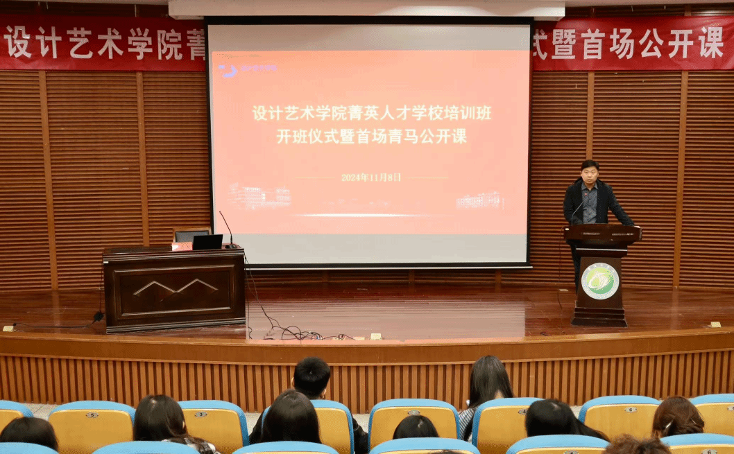 11月8日晚,在希望大道校区润美楼报告厅,设计艺术学院召开菁英人才学校培训班开班仪式暨首场青马公开课活动。校团委副书记胥爱国作首场专家报告。本次活动由设计艺术学院党总支副书记张庆领主持,院团委副书记戴心怡、学院2024年入党积极分子及菁英人才学校培训班全体学员参加。