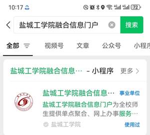 在微信中搜索“盐城工学院融合信息门户”,找到后点击即可访问,如图5所示。