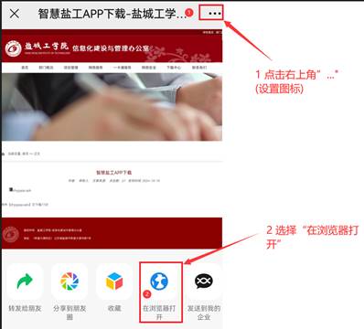 以使用手机微信扫码为例,扫码后点击所打开页面右上角的“…”图标,选择“在浏览器中打开”,如图2所示。